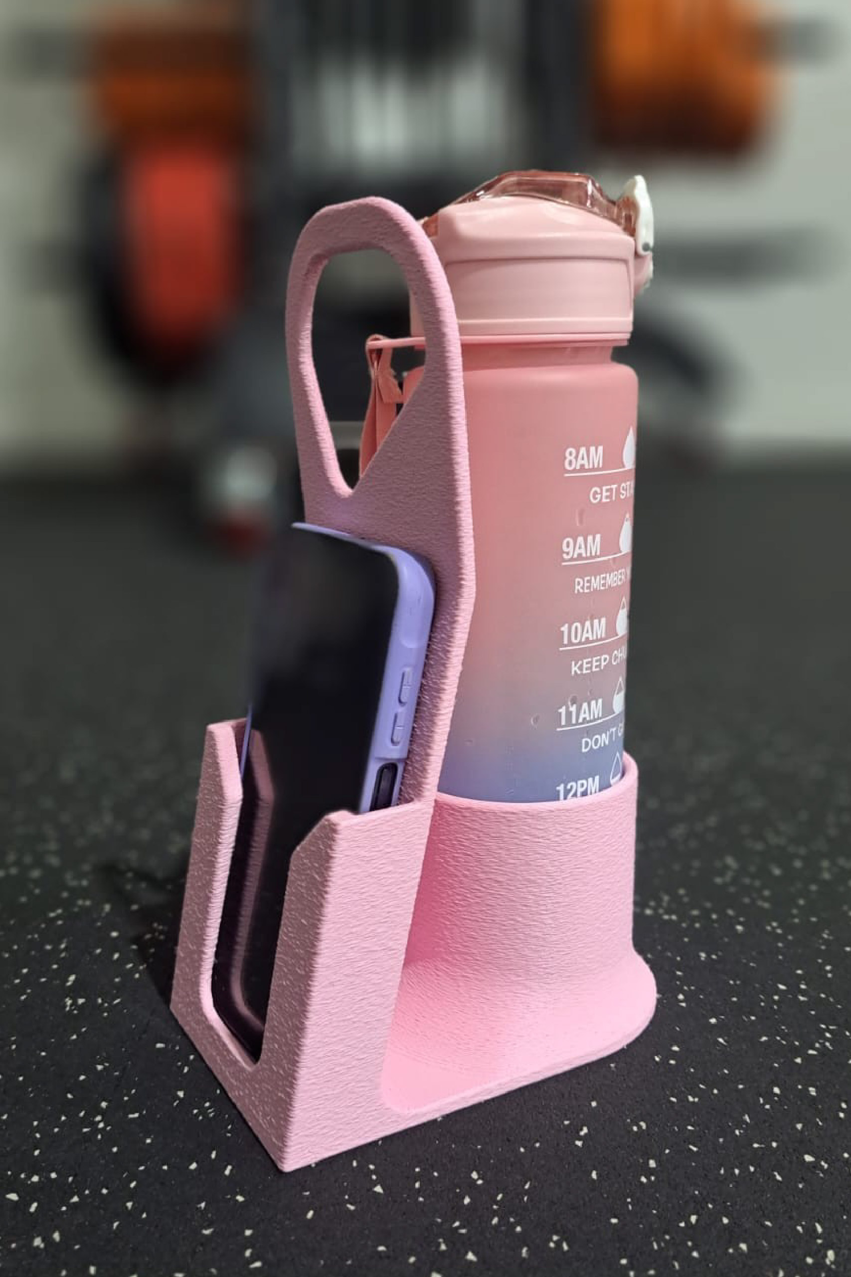 Leve o essencial sempre consigo, de forma prática e organizada. O FitDock é um suporte 3D inovador que combina espaço para a sua garrafa e para o telemóvel, tornando-se o aliado perfeito no ginásio, no escritório ou até em casa.
